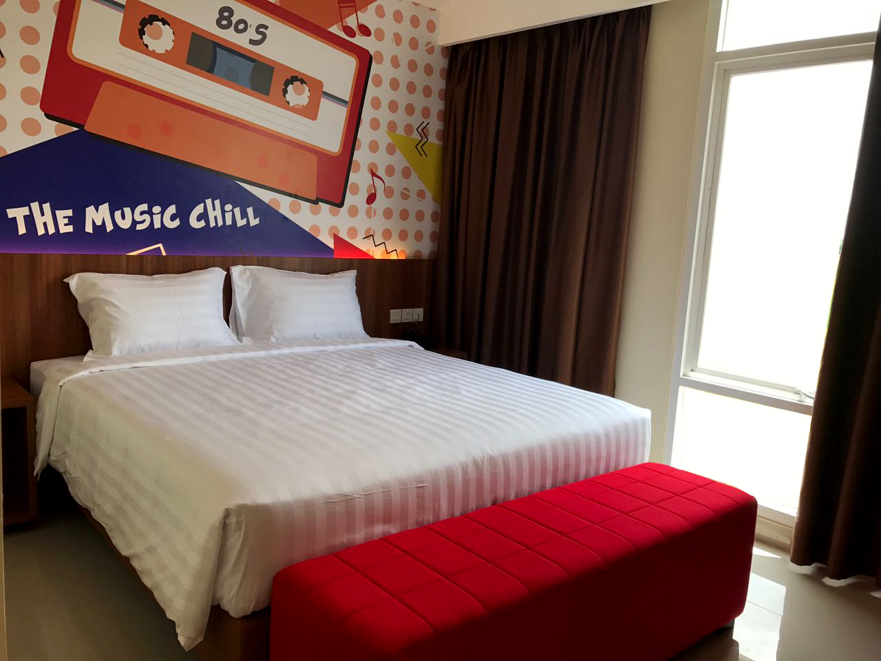 Front One Hotel Purwodadi is a one of a kind smart indulgence. Its designer thematic music rooms and tactile amenities as well as trendy photo wallpaper… and gadgets socket, wow it’s also offers guests a high speed powered internet access and entertainment channels, mini fridge hair dryer, in room safe, wadrobe and slippers, cable TV, quality & trendy bath amenities, makeup mirror